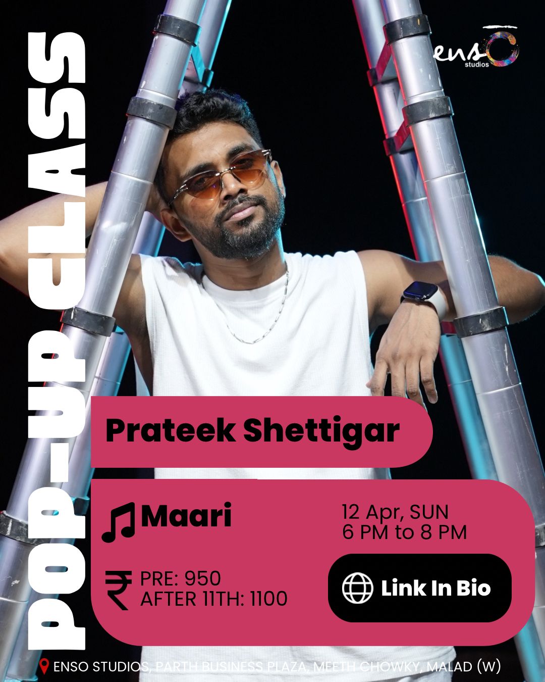 Venue : Ensō Studios, Parth Business Plaza, 4th Floor, Unit 1 & 2, New Link Road, Meethchowki, Above Zenith Hospital, Same Building as Poptates restaurant, Malad West, Mumbai – 400064 (2mins walk from Valnai Meeth Chowki Metro Station. Take B2 exit)